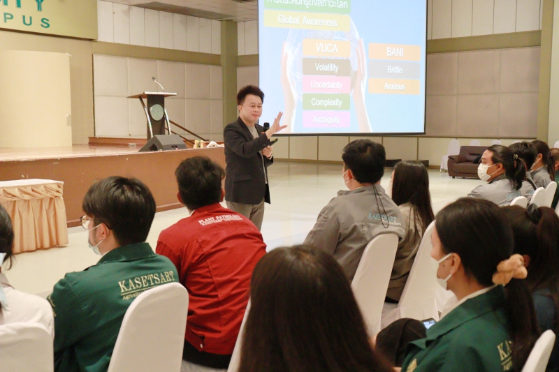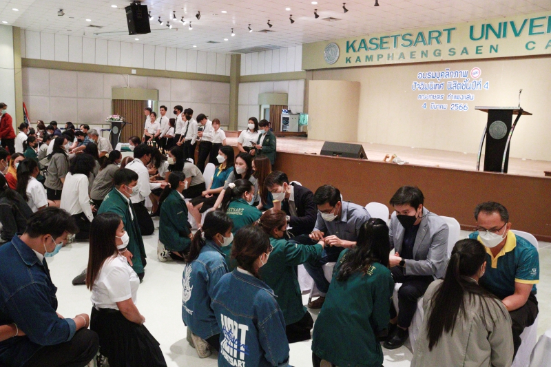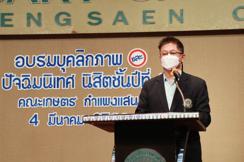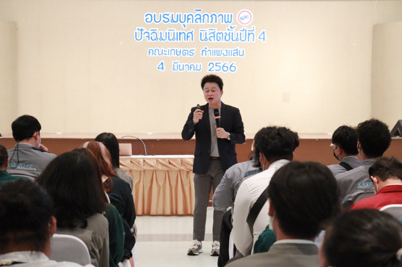 วันเสาร์ที่ 4 มีนาคม 2566 คณะเกษตร กำแพงแสน จัดกิจกรรม “อบรมบุคลิกภาพและปัจฉิมนิเทศ” โครงการพัฒนาทักษะการคิดการเรียนรู้และสร้างความภาคภูมิใจในการเป็นนิสิตคณะเกษตร กำแพงแสน ให้แก่นิสิตชั้นปีที่ 4 คณะเกษตร กำแพงแสน (รหัส 62) ได้รับเกียรติจาก ผู้ช่วยศาสตราจารย์ ดร.ชัยสิทธิ์ ทองจู คณบดีคณะเกษตร กำแพงแสน กล่าวเปิดโครงการ มีการบรรยายพิเศษและกิจกรรมกลุ่มสัมพันธ์ หัวข้อ “การพัฒนาบุคลิกภาพเพื่อเตรียมความพร้อมสู่การทำงาน โดย ดร.อาคร ประมงค์ พร้อมทีมงาน ละการบรรยายพิเศษ หัวข้อ “ศิลปะการใช้ชีวิตของวัยเริ่มทำงาน ก้าวอย่างมั่นใจ สู่โลกใหม่หลังวัยเรียน” โดย ดร.สัตกร วงศ์สงคราม จากนั้นเป็นพิธีบายศรีสู่ขวัญและผูกข้อมือ โดยมีคณาจารย์จากแต่ละภาควิชาร่วมในพิธี ณ ห้องคอนเวนชั่น อาคารศูนย์มหาวิทยาลัยเกษตรศาสตร์ วิทยาเขตกำแพงแสน