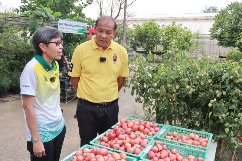 วันจันทร์ที่ 13 มีนาคม 2566 ศูนย์วิจัยและพัฒนาพืชผักเขตร้อน ภาควิชาพืชสวน คณะเกษตร กำแพงแสน ได้เรียนเชิญ คุณสกุลตลา วิจิตร บจก. โก ออแกนิคส์ ผู้คัดสรรวัตถุดิบคุณภาพส่งตรงให้ร้านอาหาร แลเชฟป๊อป คุณพิชชากร รามบุตร พร้อมทีมงาน จากร้าน Adhoc ร้านอาหารดังย่านสุขุมวิท มารังสรรค์เมนูรสเลิศจากมะเขือเทศสีดาทิพย์ พันธุ์ใหม่ ต้านทานโรคใบหงิกเหลือง พันธุ์มะเขือเทศ ประกอบด้วย มะเขือเทศสีดาทิพย์ 5 สีดาทิพย์ 6 และพันธุ์ลูกผสม KUKPS (มะเขือเทศส้มตำ) จำนวน 40 พันธุ์ ณ ศูนย์วิจัยและพัฒนาพืชผักเขตร้อน ภาควิชาพืชสวน คณะเกษตร กำแพงแสน