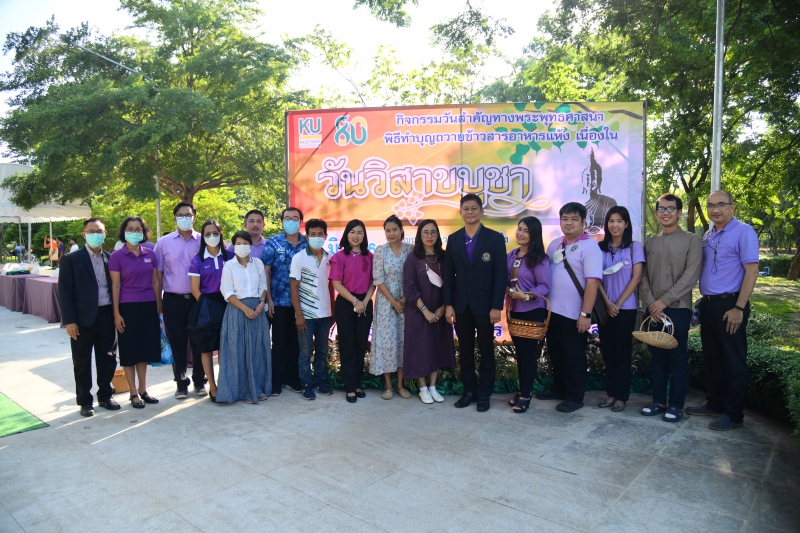 วันศุกร์ที่ 2 มิถุนายน 2566 เวลา 7.00 น. ผู้ช่วยศาสตราจารย์ ดร.ชัยสิทธิ์ ทองจู คณบดีคณะเกษตร กำแพงแสน พร้อมด้วยผู้บริหาร และบุคลากร ร่วมกิจกรรม "วันวิสาขบูชา" 2566 โดย ผู้ช่วยศาสตราจารย์ ว่าที่ร้อยตรี ดร.ศิริชัย ศรีพรหม ผู้ช่วยอธิการบดีฝ่ายบริหาร วิทยาเขตกำแพงแสน เป็นประธานในพิธี ฟังพระสงฆ์เจริญพระพุทธมนต์ และร่วมกันถวายข้าวสารอาหารแห้ง ณ พุทธอุทยานเกษตร กำแพงแสน มหาวิทยาลัยเกษตรศาสตร์ วิทยาเขตกำแพงแสน