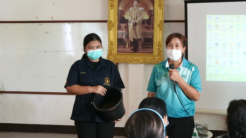 วันพฤหัสบดีที่ 29 มิถุนายน 2566 ทีมนักวิจัยศูนย์วิจัยและบริการวิชาการ คณะเกษตร กำแพงแสน นำโดย ดร.ลักขณา เบ็ญจวรรณ์ นักวิจัย ชำนาญการพิเศษ ศูนย์ปฏิบัติการวิจัยและเรือนปลูกพืชทดลอง ศูนย์วิจัยและบริการวิชาการ และ นางวันวิสาข์ วัฒนะพันธ์ศักดิ์ นักวิจัย ศูนย์วิจัยและบริการวิชาการ ดำเนินโครงการ “การอบรมถ่ายทอดองค์ความรู้การจัดการขยะอินทรีย์ในชุมชนเมือง” ภายใต้โครงการ “การถ่ายทอดนวัตกรรมเครื่องผลิตปุ๋ยหมักและแนวปฏิบัติที่ดีเพื่อการกำจัดขยะอินทรีย์ในบริบทชุมชนเมืองเขตกรุงเทพมหานคร โดยใช้นวัตกรรมเครื่องผลิตปุ๋ยหมัก ณ อาคารเอนกประสงค์ชุมชนบ้านมั่นคงสวนพลู เขตสาทร กรุงเทพมหานคร ทั้งยังได้เข้าติดตามผลงานการผลิตปุ๋ยหมักของ กลุ่มสวนผักคนเมือง ชุมชนดอนกุศลพัฒนา แขวงยานนาวา เขตสาทร กรุงเทพฯ อีกด้วย