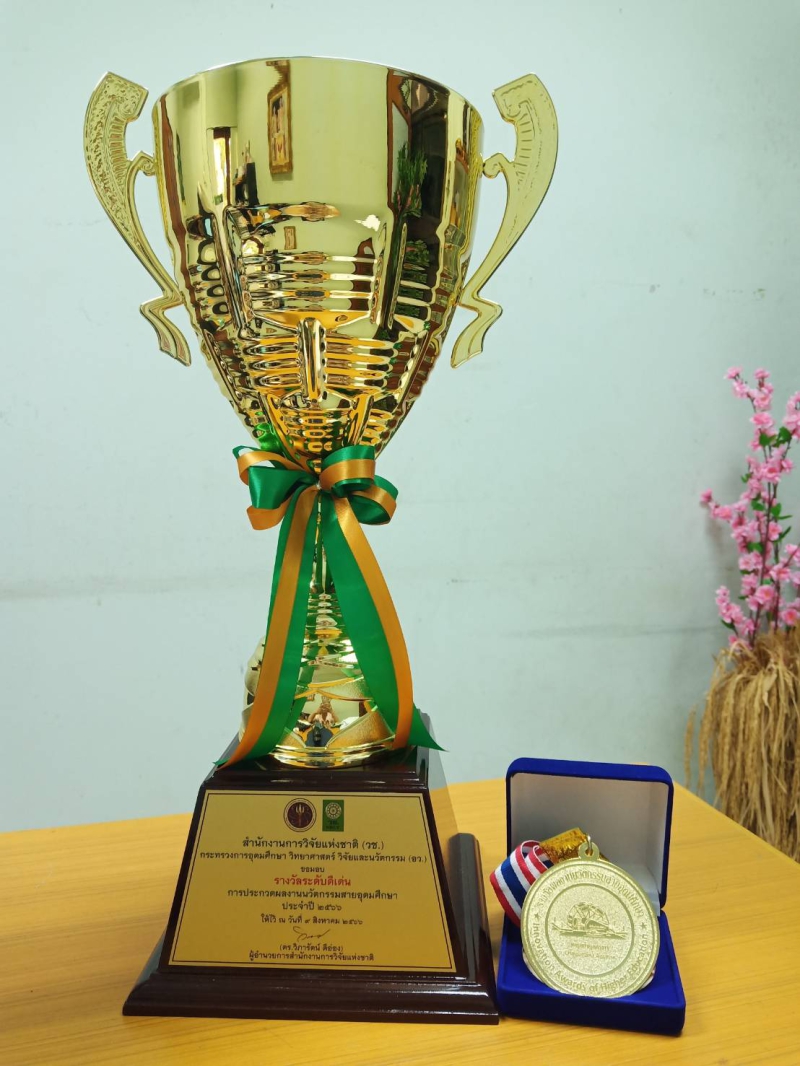 ทีมนิสิต ป.ตรี ชั้นปีที่ 4 ได้รับถ้วยรางวัลระดับดีเด่น และเหรียญทอง จากการประกวดผลงานนวัตกรรม