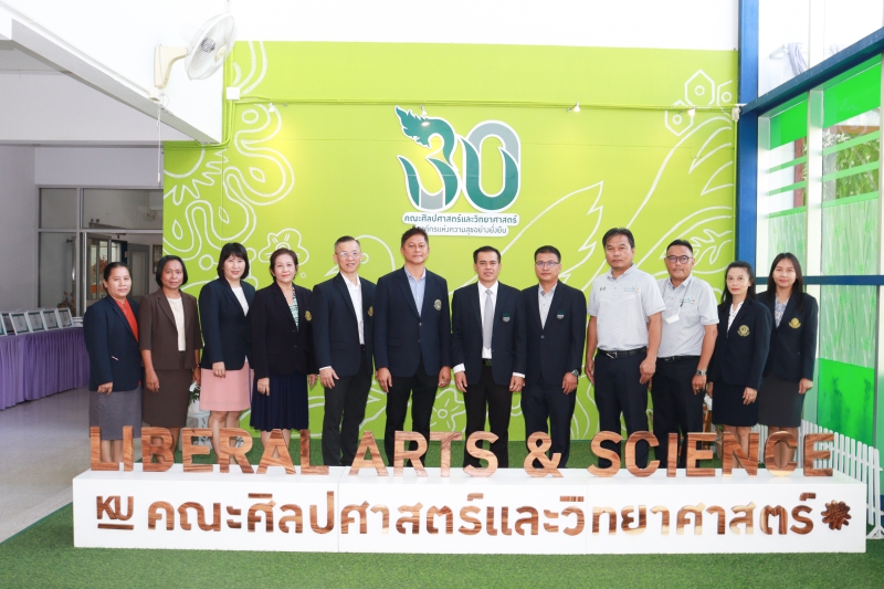 วันพฤหัสบดีที่ 31 สิงหาคม พ.ศ. 2566 ผู้ช่วยศาสตราจารย์ ดร.ชัยสิทธิ์ ทองจู คณบดีคณะเกษตร กำแพงแสน พร้อมด้วยผู้บริหาร และบุคลากร ร่วมแสดงความยินดีกับ ผู้ช่วยศาสตราจารย์ วุฒิพงษ์ ศิลปวิศาล คณบดีคณะศิลปศาสตร์และวิทยาศาสตร์ เนื่องในโอกาสวันคล้ายวันสถาปนาคณะศิลปศาสตร์และวิทยาศาสตร์ ครบรอบ 30 ปี ณ อาคาร 9 คณะศิลปะศาสตร์และวิทยาศาสตร์