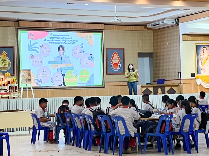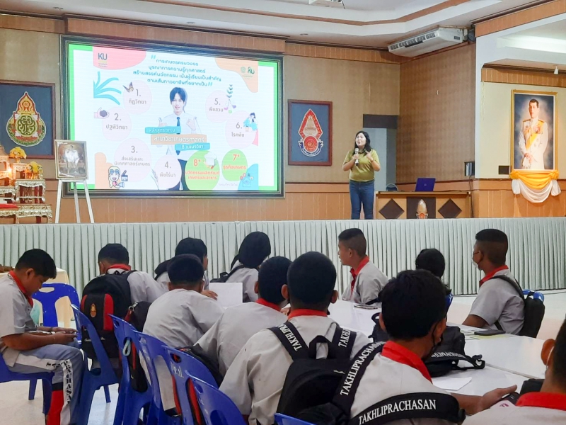 วันที่ 7 กันยายน 2566 รองศาสตราจารย์ ดร.นภาพร พันธุ์กมลศิลป์ ประธานอาจารย์ผู้รับผิดชอบหลักสูตร วท.บ. เกษตรศาสตร์ และหัวหน้าภาควิชาปฐพีวิทยา คณะเกษตร กำแพงแสน เข้าแนะนำหลักสูตรระดับปริญญาตรีของคณะเกษตร กำแพงแสน 4 หลักสูตร เพื่อเป็นแนวทางการตัดสินใจเข้าศึกษาต่อ ให้กับนักเรียนห้องเรียนวิทยาศาสตร์พลัง10 จำนวน 80 คน ณ โรงเรียนตาคลีประชาสรรค์ อำเภอตาคลี จังหวัดนครสวรรค์