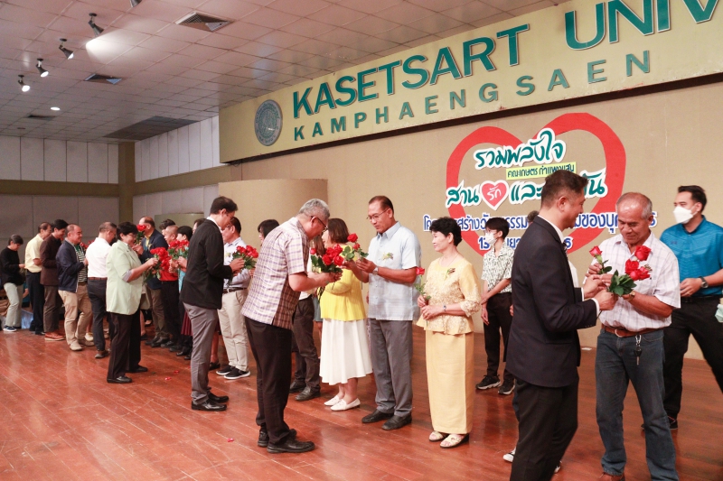 วันพุธที่ 13 กันยายน พ.ศ. 2566 คณะเกษตร กำแพงแสน จัดงาน "รวมพลังใจ สานรัก และผูกพัน" ภายใต้โครงการสร้างวัฒนธรรมและค่านิยมของบุคลากรคณะเกษตร กำแพงแสน เพื่อแสดงมุทิตาจิตแด่ผู้เกษียณอายุราชการ จำนวน 26 ท่าน และได้เชิญผู้เกษียณอายุราชการจากคณะเกษตร ร่วมงาน 3 ท่าน เป็นการรำลึกถึงคุณความดีที่ได้ปฏิบัติงานด้วยความพากเพียร วิริยะ และอุตสาหะมาเป็นเวลานาน และเพื่อเป็นเกียรติแก่ผู้เกษียณอายุราชการทุกท่าน ณ ห้องคอนเวนชัน อาคารศูนย์มหาวิทยาลัยเกษตรศาสตร์ วิทยาเขตกำแพงแสน