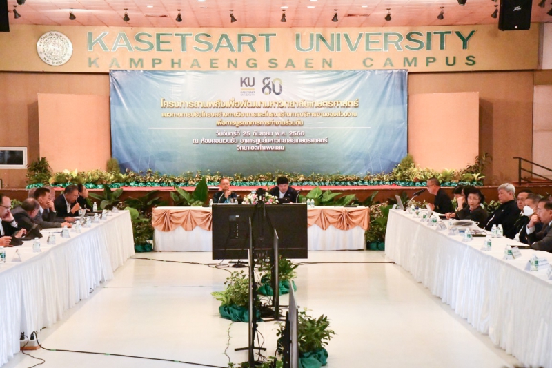 วันที่ 25 กันยายน 2566 ผู้ช่วยศาสตราจารย์ ดร.ชัยสิทธิ์ ทองจู คณบดีคณะเกษตร กำแพงแสน พร้อมด้วยทีมผู้บริหาร ร่วมประชุม และต้อนรับ ศาสตราจารย์เกียรติคุณ ดร.พีระศักดิ์ ศรีนิเวศน์ อุปนายกสภามหาวิทยาลัยเกษตรศาสตร์ และคณะกรรมการสภามหาวิทยาลัยเกษตรศาสตร์ ในการเข้าประชุมโครงการสานพลังเพื่อพัฒนามหาวิทยาลัยเกษตรศาสตร์ และการประชุมสภามหาวิทยาลัยเกษตรศาสตร์ ครั้งที่ 9/2566 โดยคณะเกษตร กำแพงแสน ได้นำผลงานทางวิชาการร่วมจัดแสดงแก่คณะกรรมการสภาฯ ณ ห้องคอนเวนชัน อาคารศูนย์มหาวิทยาลัยเกษตรศาสตร์ วิทยาเขตกำแพงแสน ทั้งนี้ กิจกรรม แคมปัสทัวร์ ยังได้นำคณะกรรมการสภาฯ เยี่ยมชมการดำเนินงานชองโครงการจัดตั้งภาควิชานวัตกรรมอาหารปลอดภัย คณะเกษตร กำแพงแสน อีกด้วย
