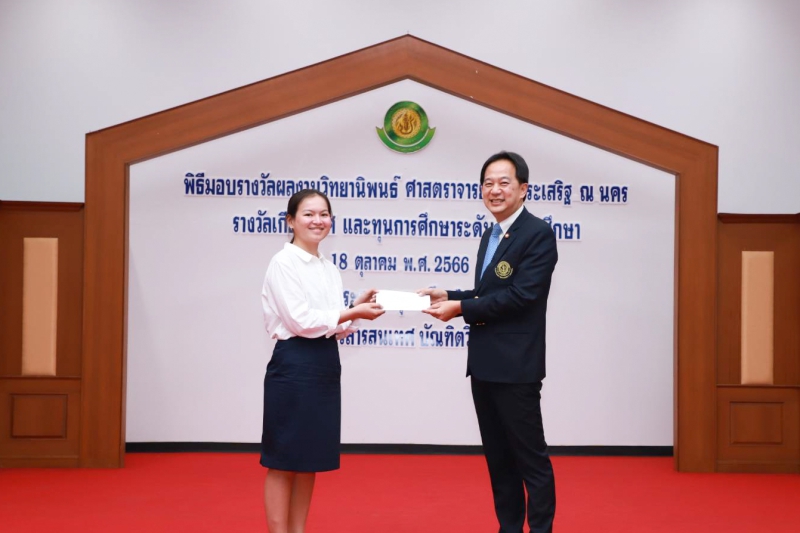 มอบโดย รองศาสตราจารย์ ดร.สมหวัง ขันตยานุวงศ์ รองอธิการบดีฝ่ายพัฒนาบัณฑิตขั้นสูงและโครงการจัดตั้งวิทยาเขตสุพรรณบุรี เมื่อวันพุธที่ 18 ตุลาคม 2566 ณ ห้องประชุมยงยุทธเจียมไชยศรี ชั้น 8 อาคารสารสนเทศ บัณฑิตวิทยาลัย