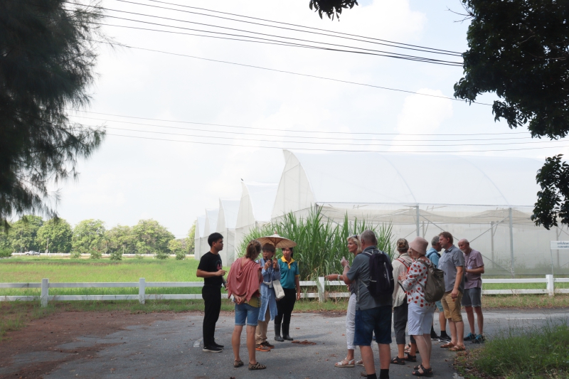 วันที่ 26 ตุลาคม 2566 คณะเกษตร กำแพงแสน ได้จัดกิจกรรมศึกษาดูงานด้านการเกษตร และปศุสัตว์ ให้กับ เกษตรกร สื่อมวลชน และองค์กรอิสระ จากประเทศเยอรมนี จำนวน 30 คน โดย รองศาสตราจารย์ ดร.ชเนษฎ์ ม้าลำพอง รองคณบดีฝ่ายวิจัย บริการวิชาการและวิเทศสัมพันธ์ ให้การต้อนรับและบรรยาย ในหัวข้อ “Agriculture in Thailand” ณ ห้องฝึกอบรม อาคารบริการวิชาการ คณะเกษตร กำแพงแสน จากนั้น ได้เข้าศึกษาดูงานการผลิตพืชอินทรีย์และพืช GAP ณ แปลงเกษตรอินทรีย์ คณะเกษตร กำแพงแสน และศึกษาดูงานการผลิตโคเนื้อพันธุ์กำแพงแสน ณ ศูนย์สาธิตการผลิตโคเนื้อครบวงจร คาวบอยแลนด์