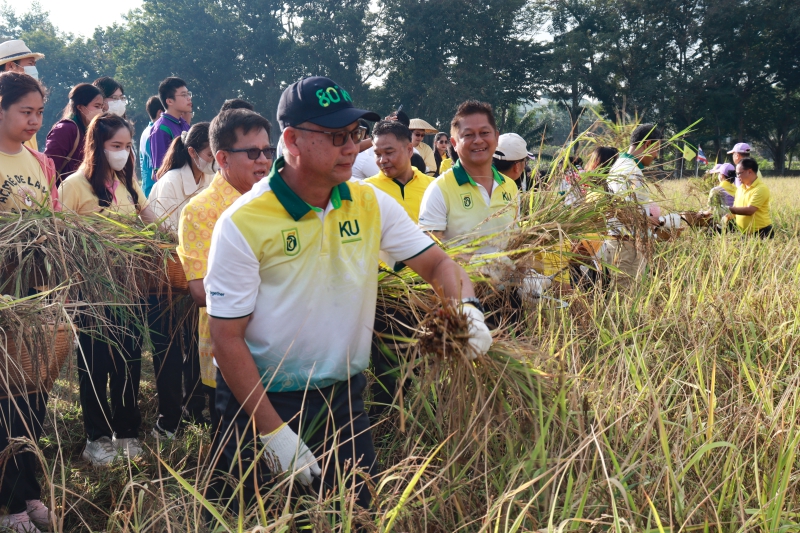 วันอังคารที่ 5 ธันวาคม 2566 ผู้ช่วยศาสตราจารย์ ดร. ชัยสิทธิ์ ทองจู คณบดีคณะเกษตร กำแพงแสน พร้อมด้วยผู้บริหาร คณาจารย์ และนิสิต ร่วมกิจกรรมเทิดพระเกียรติ “วันคล้ายวันพระบรมราชสมภพ พระบาทสมเด็จพระบรมชนกาธิเบศร มหาภูมิพลอดุลยเดชมหาราช บรมนาถบพิตร วันชาติ และวันพ่อแห่งชาติ” ประจำปี 2566 โดย รองศาสตราจารย์ น.สพ.ดร.อนุชัย ภิญโญภูมิมินทร์ รองอธิการบดีวิทยาเขตกำแพงแสน เป็นประธานในพิธี วางพานพุ่มดอกไม้สดหน้าพระฉายาลักษณ์ กล่าวน้อมรำลึกในพระมหากรุณาธิคุณ และนำร่วมกิจกรรม "เก็บเกี่ยววันพ่อ" ซึ่งเป็นข้าวพันธุ์ "ไรซ์เบอรร์รี่" ที่ได้ร่วมกันปลูกไว้เมื่อวันแม่แห่งชาติ ณ ทุ่งนาไพร มหาวิทยาลัยเกษตรศาสตร์ วิทยาเขตกำแพงแสน