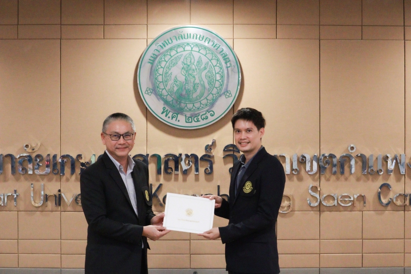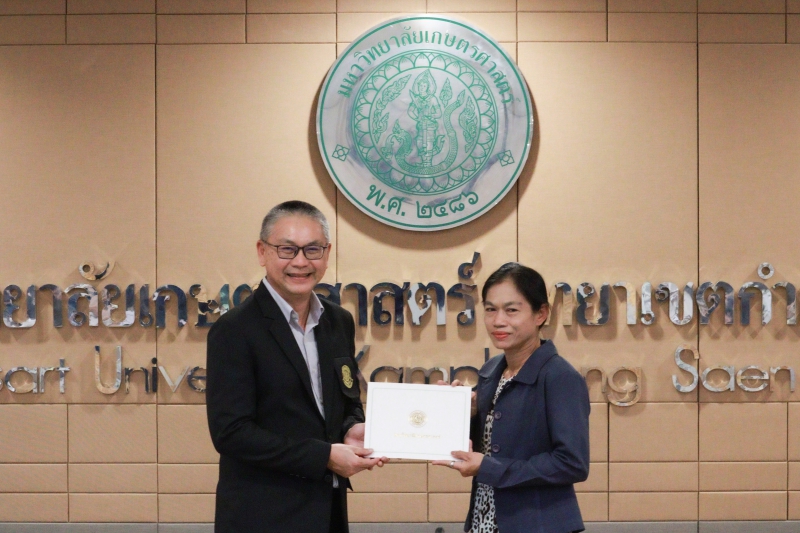 - รางวัลรองชนะเลิศอันดับ 1 ผลงาน “แนวคิดการพัฒนางานเพื่อเข้าสู่ตำแหน่งชำนาญการของบุคลากรสายสนับสนุน คณะเกษตร กำแพงแสน”