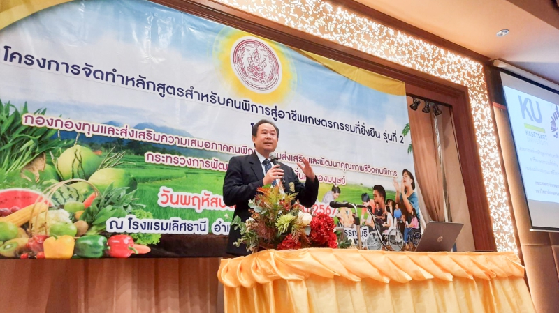 บุคลากรเป็นวิทยากร โครงการจัดทำหลักสูตรสำหรับคนพิการสู่อาชีพเกษตรกรรมที่ยั่งยืน