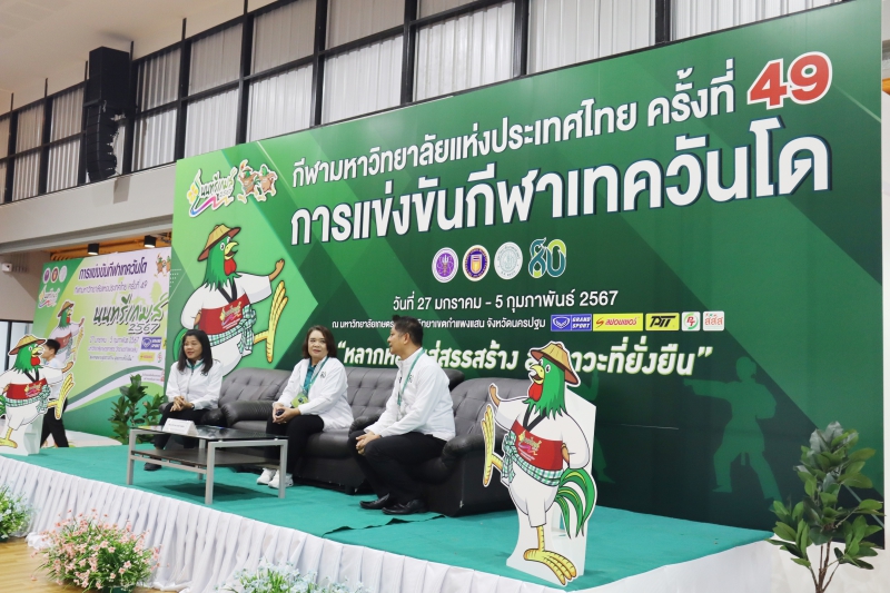 วันเสาร์ที่ 27 มกราคม 2567 ผู้ช่วยศาสตราจารย์ ดร. ชัยสิทธิ์ ทองจู คณบดีคณะเกษตร กำแพงแสน ร่วมพิธีเปิด โครงการ "KU SPORTS SGIENGE FAIR 2024" บริการด้านวิทยาศาสตร์การกีฬา สำหรับนักกีฬาหรือผู้ที่เกี่ยวข้องกับการแข่งขันกีฬามหาวิทยาลัยแห่งประเทศไทยครั้งที่ 49 นนทรีเกมส์ 2567 โดย ดร.อำพร ศรียาภัย คณบดีคณะวิทยาศาสตร์การกีฬา กล่าวรายงาน รองศาสตราจารย์ นายสัตวแพทย์ ดร.อนุชัย ภิญโญภูมิมินทร์ รองอธิการบดีวิทยาเขตกำแพงแสน กล่าวเปิดโครงการ ทั้งยังได้เยี่ยมชมหน่วยบริการจต่างๆ ณ คณะวิทยาศาสตร์การกีฬา มหาวิทยาลัยเกษตรศาสตร์ วิทยาเขตกำแพงแสน