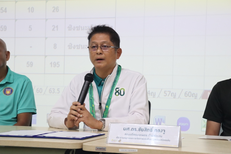 วันเสาร์ที่ 27 มกราคม 2567 ผู้ช่วยศาสตราจารย์ ดร. ชัยสิทธิ์ ทองจู คณบดีคณะเกษตร กำแพงแสน กล่าวเปิด “การประชุมผู้จัดการทีมกีฬามวยสากลสมัครเล่น และจับสลากแบ่งสาย” การแข่งขันกีฬามหาวิทยาลัยแห่งประเทศไทยครั้งที่ 49 นนทรีเกมส์ 2567 ณ ห้อง 101 ศร.4 มหาวิทยาลัยเกษตรศาสตร์ วิทยาเขตกำแพงแสน
