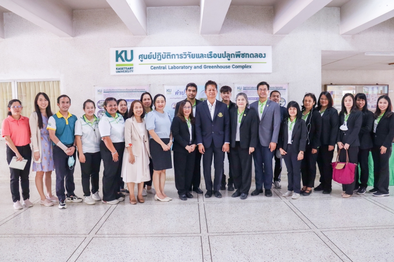 วันอังคารที่ 13 กุมภาพันธ์ พ.ศ. 2567 ผู้ช่วยศาสตราจารย์ ดร.ชัยสิทธิ์ ทองจู คณบดีคณะเกษตร กำแพงแสน พร้อมด้วย ดร.ปุณยวีร์ เดชครอง หัวหน้าศูนย์ปฏิบัติการวิจัยและเรือนปลูกพืชทดลอง คณาจารย์ภาควิชาปฐพีวิทยา และนักวิจัย ให้การต้อนรับ ผู้บริหารกรมวิทยาศาสตร์บริการ และเจ้าหน้าที่ จำนวน 16 คน นำโดย นางสาวปัทมา นพรัตน์ ผู้อำนวยการกองกองหอสมุดและศูนย์สารสนเทศวิทยาศาสตร์และเทคโนโลยี (สท.) ในการเข้าหารือเครือข่ายความร่วมมือ แลกเปลี่ยนความคิดเห็น และประสบการณ์ในการปฏิบัติงานร่วมกัน จากนั้น ได้เยี่ยมชมห้องปฏิบัติการ หน่วยวิเคราะห์วิจัยดิน พืชและวัสดุเกษตร และหน่วยวิเคราะห์วิจัยพฤกษเคมี ณ ศูนย์ปฏิบัติการวิจัยและเรือนปลูกพืชทดลอง และภาควิชาปฐพีวิทยา คณะเกษตร กำแพงแสน โดยมี รองศาสตราจารย์ ดร.นภาพร พันธุ์กมลศิลป์ หัวหน้าภาควิชาปฐพีวิทยา คณาจารย์ และบุคลากร ให้การต้อนรับและนำชม ณ ศูนย์ปฏิบัติการวิจัยและเรือนปลูกพืชทดลอง และภาควิชาปฐพีวิทยา คณะเกษตร กำแพงแสน