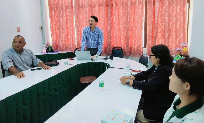 วันที่ 28 กุมภาพันธ์ 2567 เวลา 09.00 - 11.30 น. ผู้ช่วยศาสตราจารย์ ดร.สุรเดช บุตทชน หัวหน้าภาควิชากีฏวิทยา ให้การต้อนรับ Prof. Dr. Antonio Carlos de Souza Abboud จาก Department of Agro technology and Sustainability at the Federal Rural University of Rio de Janeiro ประเทศบราซิล ในการเข้าเยี่ยมชมภาควิชากีฏวิทยา และพูดคุยแลกเปลี่ยนความรู้ด้านการใช้แมลงที่เป็นประโยชน์ในแปลงพืชอินทรีย์และในสภาพโรงเรือนปลูกพืช ณ ห้องประชุมภาควิชากีฏวิทยา คณะเกษตร กำแพงแสน ต่อมาได้เข้าพบคณบดีคณะเกษตร กำแพงแสน และคณาจารย์จากคณะเกษตร กำแพงแสน เพื่อพูดคุยและเปลี่ยนเรียนรู้เกี่ยวกับวิชาการเกษตร