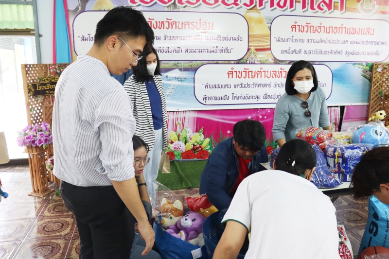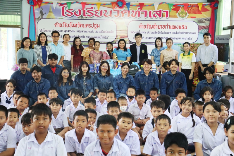 วันศุกร์ที่ 8 มีนาคม พ.ศ. 2567 ผู้ช่วยศาสตราจารย์ ดร.ธวัชชัย อินทร์บุญช่วย รองคณบดีฝ่ายพัฒนานิสิต พร้อมด้วยคณาจารย์ บุคลากร และนิสิต ได้นำอุปกรณ์กีฬา เครื่องเขียน ของเล่น และขนม ที่ทุกท่านได้ร่วมกันบริจาค ส่งมอบให้แก่โรงเรียนวัดท่าเสา ต.ห้วยม่วง อ.กำแพงแสน จ.นครปฐม รับมอบโดย นางมณีวรรณ อนุศาสนี ผู้อำนวยการโรงเรียนวัดท่าเสา พร้อมด้วยคุณครู และนักเรียน ร่วมต้อนรับ