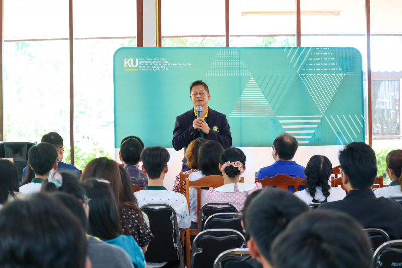 วันศุกร์ที่ 26 เมษายน 2567 เวลา 13.30 น. ผู้ช่วยศาสตราจารย์ ดร.ชัยสิทธิ์ ทองจู คณบดีคณะเกษตร กำแพงแสน พร้อมผู้บริหาร และบุคลากร ให้การต้อนรับ พนักงานใหม่ ในสังกัดมหาวิทยาลัยเกษตรศาสตร์ จาก “โครงการฝึกอบรมปฐมนิเทศพนักงาน มหาวิทยาลัยเกษตรศาสตร์ รุ่นที่ 78” จำนวน 120 คน โดย สำนักส่งเสริมและฝึกอมรม กำแพงแสน เป็นผู้ดำเนินการจัดกิจกรรม และได้เข้าศึกษาดูงานกิจการของคณะเกษตร กำแพงแสน ในจัดกิจกรรม Campus Tour มหาวิทยาลัยฯ ณ ร้านเกษตรอภิรมย์ และ ร้าน KU more อาคารแปรรูปสินค้าเกษตรและอาหาร โครงการจัดตั้งภาควิชานวัตกรรมอาหารปลอดภัย คณะเกษตร กำแพงแสน