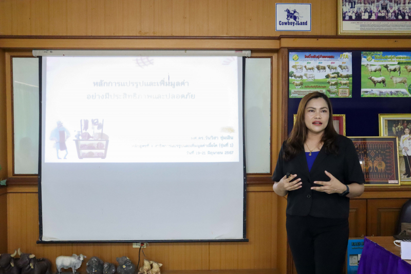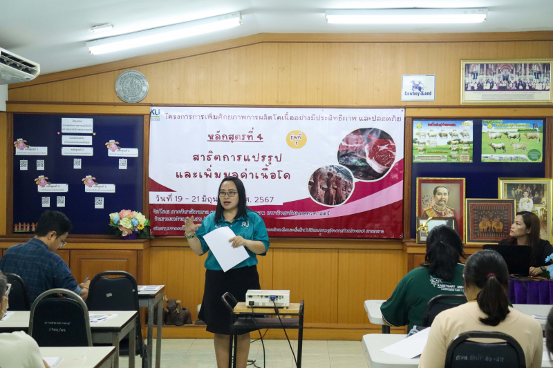ภาควิชาสัตวบาล คณะเกษตร กำแพงแสน จัดอบรม "สาธิตการแปรรูปและเพิ่มมูลค่าเนื้อโค (หลักสูตรที่ 4)" ภายใต้โครงการการเพิ่มศักยภาพการผลิตโคเนื้ออย่างมีประสิทธิภาพ และปลอดภัย ในระหว่างวันที่ 19-21 มิถุนายน 2567 ให้แก่เกษตรกร ผู้ประกอบการ และผู้สนใจทั่วไป โดย ผู้ช่วยศาสตราจารย์ ดร.สุกัญญา รัตนทับทิมทอง หัวหน้าโครงการ กล่าวเปิดการอบรม ในวันที่ 19 มิถุนายน 2567 ณ ห้องฝึกอบรมชั้น 2 อาคารอารีน่า คาวบอยแลนด์