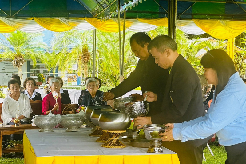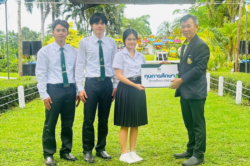 ชมการแสดงจากโรงเรียนบ้านทุ่งกะโตน พิธีตักบาตรพระสงฆ์ 9 รูป ตามด้วยกิจกรรมมอบอุปกรณ์การเรียนการสอนให้กับโรงเรียนในพื้นที่ จำนวน 8 โรงเรียน โดย คุณฐพัศชนก ประดิษฐพงศ์ และพระญาติ พิธีมอบทุนการศึกษาให้กับตัวแทนนิสิตชั้นปีที่ 1 คณะเกษตร กำแพงแสน ที่มีพื้นเพอยู่ในพื้นที่บริเวณสถานีวิจัยฯ จำนวน 3 คน ได้แก่ 1) นางสาวพิชญาภา เกษร 2) นายวชิระ วงค์คลัง และ 3) นายไชยวัฒน์ ภิรมย์รอด เสร็จสิ้นพิธี และรับประทานอาหารร่วมกัน