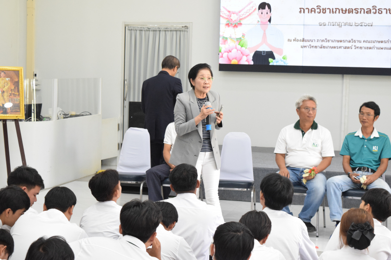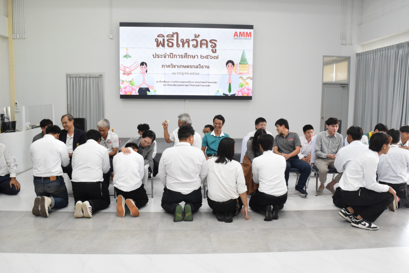 วันที่ 11 กรกฎาคม 2567 ภาควิชาเกษตรกลวิธาน คณะเกษตร กำแพงแสน ได้จัดโครงการไหว้ครู ประจำปีการศึกษา 2567 ขึ้น เพื่อให้นิสิตได้ระลึกถึงผู้มีพระคุณที่ได้อบรมสั่งสอนให้เป็นคนดีของสังคมและเพื่อให้เกิดความรักและความสามัคคีในหมู่คณะ โดยมีคณาจารย์และบุคลากร และนิสิตภาควิชาเกษตรกลวิธานคณะเกษตร กำแพงแสน ทุกชั้นปี เข้าร่วมในพิธีและในการนี้ได้รับเกียรติจาก รศ.พงศ์ศักดิ์ ชลธนสวัสดิ์ เป็นประธานในพิธี และได้มอบโอวาทและคำอวยพรแก่นิสิต