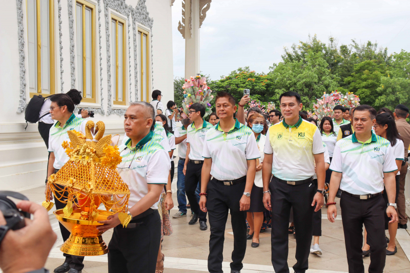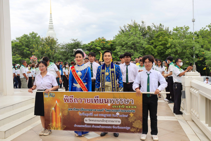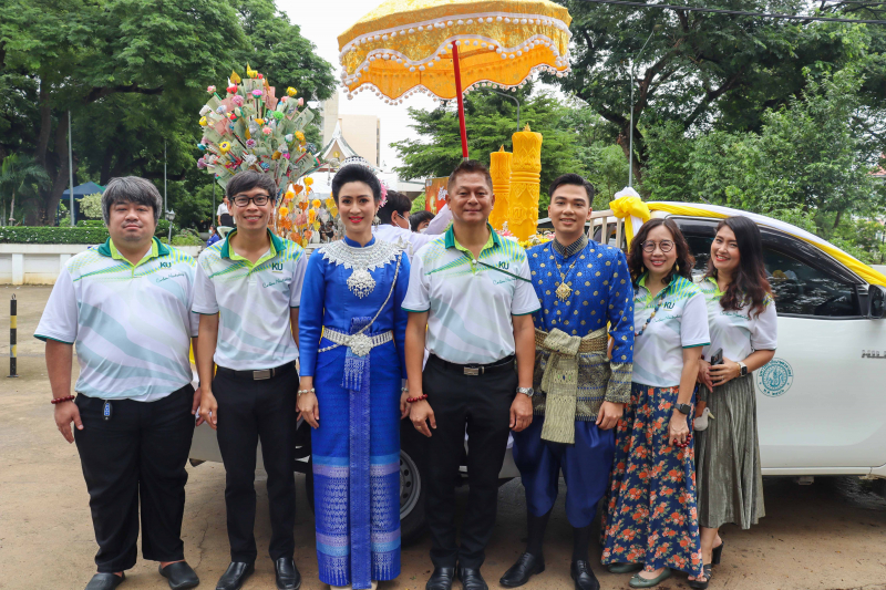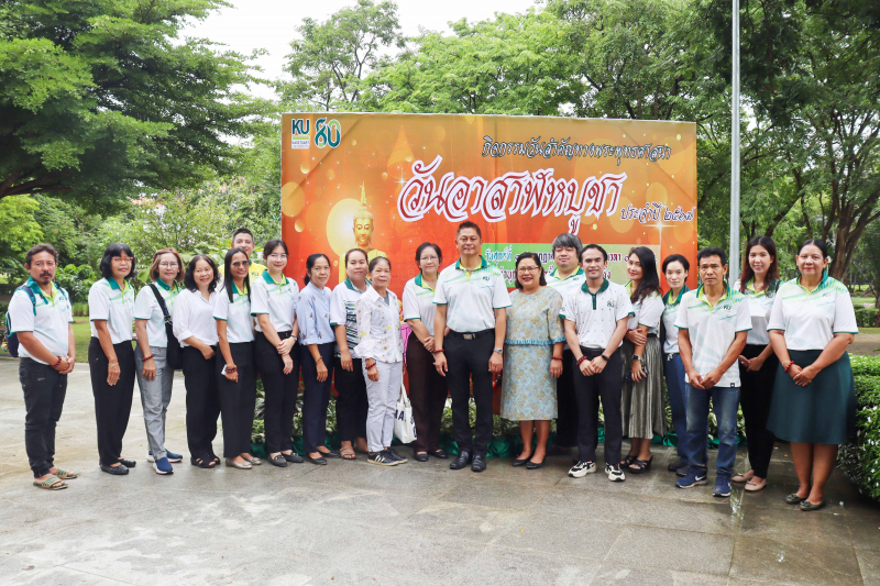 วันศุกร์ที่ 19 กรกฎาคม พ.ศ. 2567 ผู้ช่วยศาสตราจารย์ ดร.ชัยสิทธิ์ ทองจู คณบดีคณะเกษตร กำแพงแสน พร้อมด้วยผู้บริหาร คณาจารย์ บุคลากร และนิสิต ร่วมกิจกรรมของวิทยาเขตกำแพงแสน เนื่องในวันอาสาฬหบูชา มีพิธีสงฆ์ และถวายข้าวสารอาหารแห้ง โดยมี ผู้ช่วยศาสตราจารย์ว่าที่ร้อยตรี ดร.ศิริชัย ศรีพรหม ผู้ช่วยอธิการบดีฝ่ายบริหาร วิทยาเขตกำแพงแสน เป็นประธานในพิธี ณ พุทธอุทยานเกษตร กำแพงแสน จากนั้น ได้เดินทางไปยังวัดหนองแกเล็กสุวรรณาราม เพื่อถวายเทียนพรรษา ถวายจัตุปัจจัย และเครื่องไทยธรรมแด่พระสงฆ์ โดยมียอดเงินทำบุญทั้งสิ้น 52,503.75 บาท