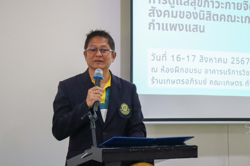 คณะเกษตร กำแพงแสน จัดกิจกรรม “โครงการการดูแลสุขภาวะกายจิตสังคมของนิสิตคณะเกษตร กำแพงแสน ให้แก่คณาจารย์ และบุคลากรของคณะเกษตร กำแพงแสน โดย รองศาสตราจารย์ ดร.ชัยณรงค์ รัตนกรีฑากุล รองคณบดีฝ่ายบริหาร กล่าวรายงาน ได้รับเกียรติจาก ผู้ช่วยศาสตราจารย์ ดร.ชัยสิทธิ์ ทองจู คณบดีคณะเกษตร กำแพงแสน กล่าวเปิดโครงการ วิทยากร โดย ศาสตราจารย์ ดร.ดาราวรรณ ต๊ะปินตา ผู้ช่วยศาสตราจารย์ สราวลี สุนทรวิจิตร และผู้ช่วยศาสตราจารย์ ภาคิณี เดชชัยยศ จาก คณะพยาบาลศาสตร์ มหาวิทยาลัยบูรพา ในวันที่ 16-17 สิงหาคม พ.ศ. 2567 ณ ห้องฝึกอบรม อาคารบริการวิชาการ ร้านเกษตรอภิรมย์ คณะเกษตร กำแพงแสน
