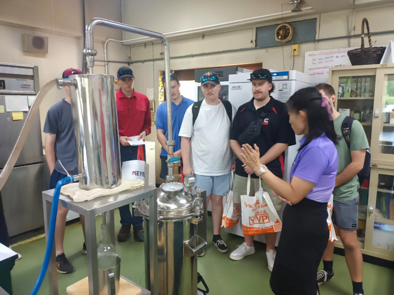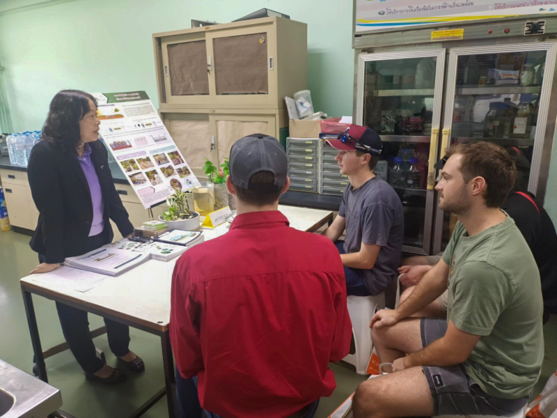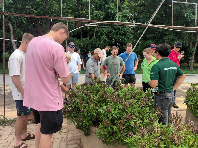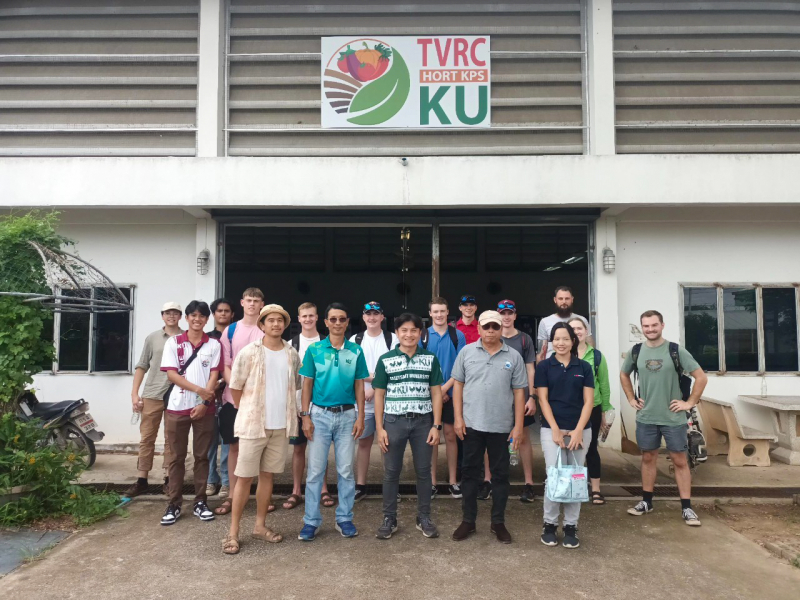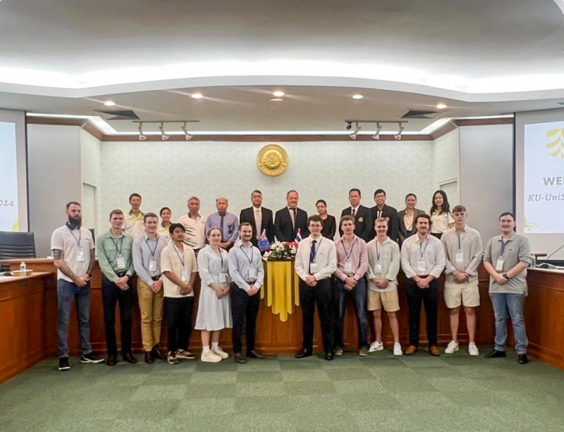 เมื่อวันที่ 19 สิงหาคม 2567 รองศาสตราจารย์ ดร. ชเนษฎ์ ม้าลำพอง รองคณบดีฝ่ายวิจัย บริการวิชาการและวิเทศสัมพันธ์ นำนิสิตแลกเปลี่ยน จากโครงการ แลกเปลี่ยนนิสิต ระหว่าง มหาวิทยาลัยเกษตรศาสตร์ และ University of Southern Queensland ประเทศออสเตรเลีย โดยการดำเนินงานของคณะเกษตร กำแพงแสน ร่วมกับ คณะวิศวกรรมศาสตร์ กำแพงแสน เข้าเยี่ยมคารวะ รองศาสตราจารย์ ดร.ชไมภัค ไม้กลัด ผู้ช่วยอธิการบดีฝ่ายวิเทศสัมพันธ์ ผู้แทนอธิการบดีมหาวิทยาลัยเกษตรศาสตร์ และเยี่ยมชมหอประวัติมหาวิทยาลัยเกษตรศาสตร์ ทั้งนี้คณะนิสิตแลกเปลี่ยนฯ ได้เข้าศึกษาดูงาน ณ หอประวัติ มหาวิทยาลัยเกษตรศาสตร์ วิทยาเขตกำแพงแสน, คณะประมง, ศูนย์วิทยาศาสตร์ข้าว และ หน่วยงานในสังกัดคณะเกษตร กำแพงแสน ได้แก่ ศูนย์วิจัยพืชผักเขตร้อน ภาควิชาพืชสวน และศูนย์ปฏิบัติการวิจัยและเรือนปลูกพืชทดลอง มีนิสิตจาก University of Southern Queensland เข้าร่วมกิจกรรม จำนวน 12 คน และ มหาวิทยาลัยเกษตรศาสตร์ วิทยาเขตกำแพงแสน จำนวน 16 คน ในช่วงเย็นทางมหาวิทยาลัยเกษตรศาสตร์ วิทยาเขตกำแพงแสน ได้เป็นเจ้าภาพเลี้ยงรับรอง และทำกิจกรรมร่วมกับนิสิตไทยด้วย