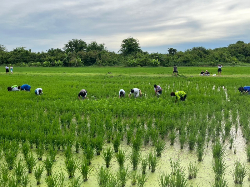 วันที่ 21 สิงหาคม 2567 นิสิตคณะเกษตร กำแพงแสน ที่ได้รับทุนพัฒนาทักษะทางการศึกษา ได้ร่วมกิจกรรมการกำจัดวัชพืชในแปลงนาลดโลกร้อน (เปียกสลับแห้ง) ก่อนใส่ปุ๋ยข้าวพันธุ์ กข41 ครั้งที่ 2 (น้ำในท่อดูน้ำลดระดับมากกว่า 10 ซม.) กิจกรรมนี้มีเป้าหมายในการใช้น้ำอย่างมีประสิทธิภาพสูงสุด และลดการปลดปล่อยก๊าซมีเทนจากนาข้าว สอดรับกับนโยบายการพัฒนาอย่างยั่งยืน และการเข้าสู่ความเป็นกลางทางคาร์บอนในปี 2035 ณ ฟาร์มนิสิตคณะเกษตร กำแพงแสน