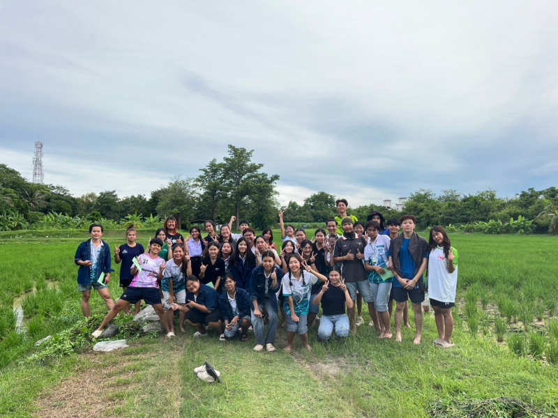 นิสิตทุนพัฒนาทักษะทางการศึกษา ทำกิจกรรมการกำจัดวัชพืชในแปลงนาลดโลกร้อน (เปียกสลับแห้ง)
