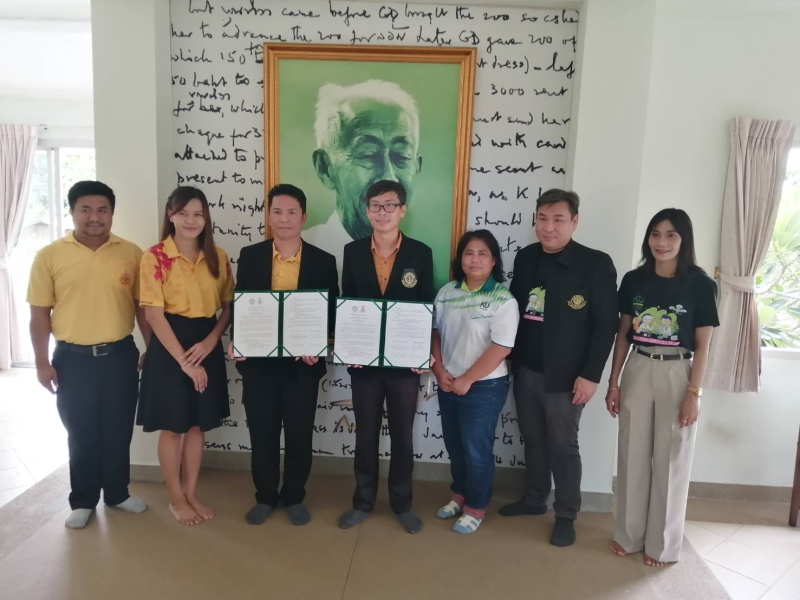 ผู้ช่วยศาสตราจารย์ ดร.ธวัชชัย อินทร์บุญช่วย รองคณบดีฝ่ายพัฒนานิสิต ผู้ช่วยศาสตราจารย์ ดร.เชิดพงษ์ ขีระจิตต์ หัวหน้าภาควิชาส่งเสริมและนิเทศศาสตร์เกษตร ผู้แทนคณะเกษตร กำแพงแสน ในการลงนามความร่วมมือทางการศึกษา ระหว่างคณะเกษตร กำแพงแสน และ โรงเรียนบางสะพานน้อยวิทยาคม โดยมีนายจงรักษ์ วัตรสติ ผู้อำนวยการโรงเรียนบางสะพานน้อยวิทยาคม เป็นผู้ลงนาม เมื่อวันจันทร์ที่ 2 กันยายน 2567 ณ สถานีวิจัยสิทธิพรกฤดากร คณะเกษตร กำแพงแสน มหาวิทยาลัยเกษตรศาสตร์