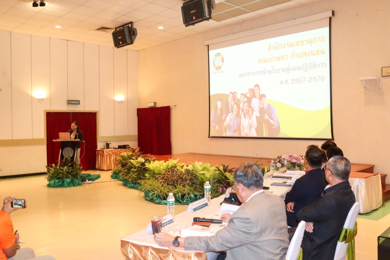วันศุกร์ที่ 6 กันยายน 2567 มีการแสดงวิสัยทัศน์ ตำแหน่ง "หัวหน้าสำนักงานเลขานุการคณะเกษตร กำแพงแพงแสน" โดยมี ดร.ดำรง ศรีพระราม รองอธิการบดีฝ่ายบริหารและความเป็นกลางทางคาร์บอน เป็นประธานกรรมการฯ พร้อมด้วย ผู้บริหารวิทยาเขตกำแพงแสน นำโดย รองศาสตราจารย์ นายสัตวแพทย์ ดร.อนุชัย ภิญโญภูมิมินทร์ รองอธิการบดีวิทยาเขตกำแพงแสน ร่วมเป็นกรรมการฯ มีบุคลากรคณะเกษตร กำแพงแสน และบุคลากรภายในวิทยาเขตกำแพงแสน ร่วมรับฟัง ณ ห้องเธียเตอร์ อาคารศูนย์มหาวิทยาลัย