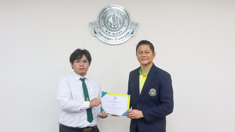 วันพุธที่ 18 กันยายน 2567 ผู้ช่วยศาสตราจารย์ ดร.ชัยสิทธิ์ ทองจู คณบดีคณะเกษตร กำแพงแสน มอบเกียรติบัตร ให้แก่นิสิตคณะเกษตร กำแพงแสน ที่สอบได้คะแนน KU-EXITE ประจำปี 2567 (ปีการศึกษา 2566) ในระดับคะแนน B2 จำนวน 16 คน ณ ห้องประชุมเสรี-สมพร ทรัพยสาร คณะเกษตร กำแพงแสน เพื่อเป็นการยกย่อง และสนับสนุนนิสิตที่มีความตั้งใจ ซึ่งเป็นแบบอย่างที่ดีให้กับนิสิตรุ่นต่อๆ ไป โดยมีรายชื่อนิสิต ดังนี้