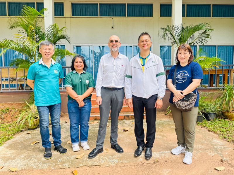 วันศุกร์ที่ 18 ตุลาคม พ.ศ.2567 ผู้ช่วยศาสตราจารย์ ดร.ชัยสิทธิ์ ทองจู คณบดีคณะเกษตร กำแพงแสน รองศาสตราจารย์ ดร.ชัยณรงค์ รัตนกรีฑากุล รองคณบดีฝ่ายบริหาร ผู้ช่วยศาสตราจารย์ ดร. วนิดา สืบสายพรหม ผู้ช่วยคณบดีฝ่ายกิจการพิเศษ และ ดร.ระวิวรรณ โชติพันธ์ ผู้รักษาการแทนหัวหน้าสถานีวิจัยสิทธิพรกฤดากร ให้การต้อนรับ Dr. Laurent Vaysse, Natural Rubber Sector Coordinator, UPR BioWooEB Unit, CIRAD Montpellier, France ในการนี้ได้หารือความร่วมมือในการจัดอบรมการจัดการแปลงผลิตยางพาราอย่างยั่งยืน และแนวทางการรักษาแปลงยางพาราของสถานีวิจัยฯ ที่มีการจัดการอย่างยั่งยืนมากว่า 20 ปี