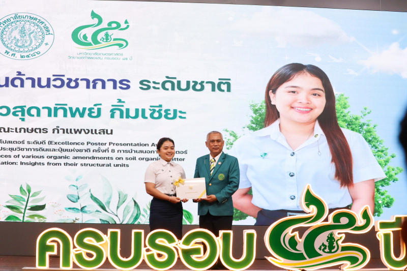 จากการได้รางวัล : การนำเสนอภาคโปสเตอร์ ระดับดี (Excellence Poster Presentation Award) การประชุมวิชาการดินและปุ๋ยแห่งชาติ ครั้งที่ 8