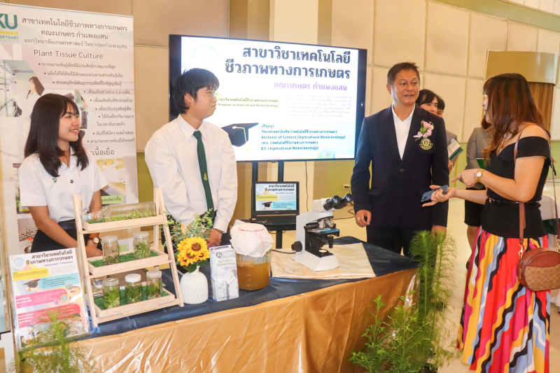 วันอังคารที่ 12 พฤศจิกายน พ.ศ. 2567 เวลา 11.00 น. คณะเกษตร กำแพงแสน นำผลงานนวัตกรรมต่างๆ จัดแสดงในงานแถลงข่าวการจัดงานเกษตร กำแพงแสน ครั้งที่ 27 ประจำปี 2567 ให้แก่สื่อมวลชนได้เผยแพร่ข้อมูลการจัดงานของคณะเกษตร กำแพงแสน ณ ห้องคอนเวนชั่น อาคารศูนย์มหาวิทยาลัยเกษตรศาสตร์ โดยมี ดร.จงรัก วัชรินทร์รัตน์ อธิการบดีมหาวิทยาลัยเกษตรศาสตร์ นำสื่อมวลชนเดินชมนิทรรศการต่างๆ