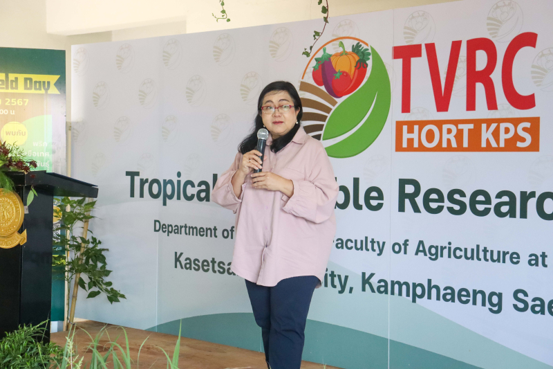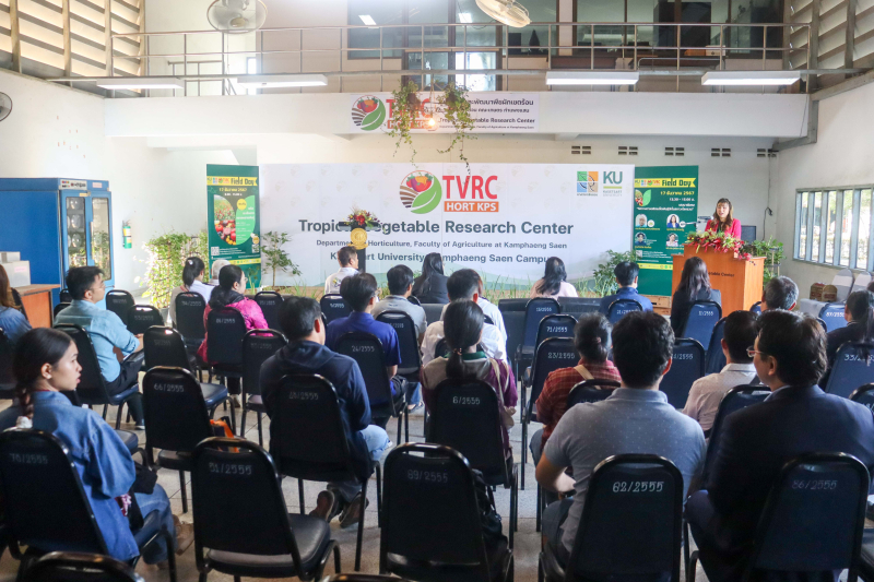 ศูนย์วิจัยและพัฒนาพืชผักเขตร้อน (TVRC) ภาควิชาพืชสวน คณะเกษตร กำแพงแสน จัดกิจกรรม “แสดงพันธุ์พืชคืนถิ่น พริก มะเขือเทศ (TVRC Field Day 2024) ในวันอังคารที่ 17 ธันวาคม พ.ศ. 2567 มีพิธีเปิด โดย ผศ.ดร.ชัชมาศ กาญจนอุดมการ หัวหน้าโครงการเมล็ดคืนถิ่นประเทศไทย และหัวหน้าศูนย์วิจัยและพัฒนาพืชผักเขตร้อน กล่าวรายงาน ประวัติความเป็นมา และวัตถุประสงค์การจัดงาน ผศ.ดร.ชัยสิทธิ์ ทองจู คณบดีคณะเกษตร กำแพงแสน กล่าวต้อนรับ คุณกัญญาภรณ์ พิพิธแสงจันทร์ รักษาการ ผู้เชี่ยวชาญด้านอนุรักษ์พันธุกรรม กรมวิชาการเกษตร กล่าวถึงความสำคัญของการอนุรักษ์พันธุ์พืช และได้รับเกียรติจาก ผศ.ดร.สุกัญญา รัตนทับทิมทอง ผู้ช่วยอธิการบดีฝ่ายวิจัย บริการวิชาการและวิเทศสัมพันธ์ วิทยาเขตกำแพงแสน ผู้แทนรองอธิการบดีวิทยาเขตกำแพงแสน กล่าวเปิดงาน จากนั้น เป็นพิธีส่งมอบแมล็ดพันธุ์สำรองเพื่อเป็น safety duplicaton ให้กับกรมวิชาการเกษตร และถ่ายภาพหมู่ร่วมกัน ณ โรงงานเมล็ดพันธุ์ ศูนย์วิจัยและพัฒนาพืชผักเขตร้อน (TVRC) ภาควิชาพืชสวน คณะเกษตร กำแพงแสน