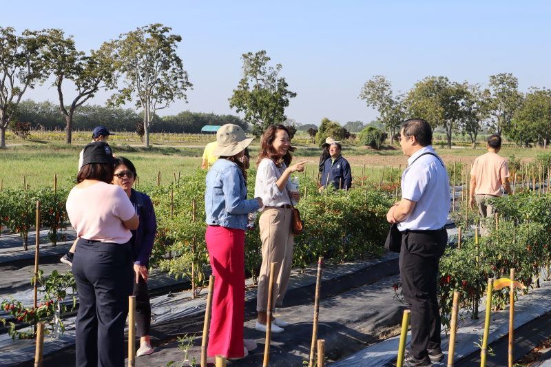 จากนั้น ได้นำผู้เข้าร่วมกิจกรรมได้เยี่ยมชมแปลงแสดงพันธุ์พืชคืนถิ่น พริก มะเขือเทศ ได้ร่วมประเมินลักษณะพริกและมะเขือเทศ อีกด้วย