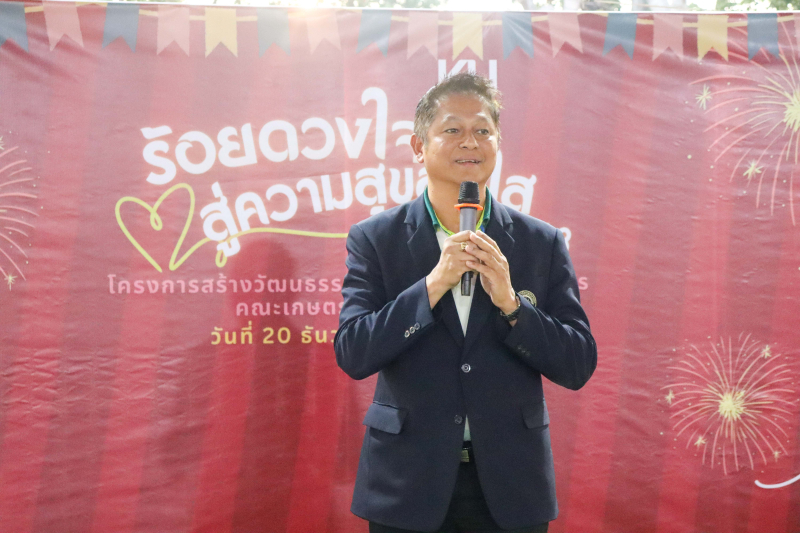 วันศุกร์ที่ 20 ธันวาคม พ.ศ. 2567 คณะเกษตร กำแพงแสน จัดกิจกรรม “ร้อยดวงใจ สู่ความสุขสดใส” ประจำปี 2568 ภายใต้โครงการสร้างวัฒนธรรมและค่านิยมของบุคลากร คณะเกษตร กำแพงแสน ผู้ช่วยศาสตราจารย์ ดร.ชัยสิทธิ์ ทองจู คณบดีคณะเกษตร กำแพงแสน เป็นประธานกล่าวเปิดงาน ขอบคุณบุคลากร และอวยพรเนื่องในโอกาสปีใหม่ 2568 ชมวีดีทัศน์ “กิจกรรมและการดำเนินงานต่างๆ ของคณะเกษตร กำแพงแสน ปี 2567 ที่ผ่านมา กิจกรรมแนะนำบุคลากรใหม่ และรับประทานอาหารร่วมกัน ณ อาคารก่อประดิษฐ์สกุล