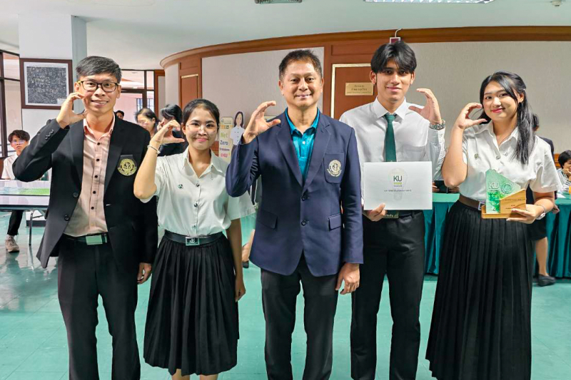 ผู้แทนสโมสรนิสิตคณะเกษตร กำแพงแสน ได้แก่ นายกฤตัชญ์ ยี่หวา ภาควิชาพืชสวน น.ส.สุภัทชา รอดเทศ ภาควิชาส่งเสริมและนิเทศศาสตร์เกษตร และ น.ส.วรินธีรา เนตรสุวรรณ ภาควิชาปฐพีวิทยา เข้ารับมอบโล่ห์ พร้อมเงินรางวัล จาก ดร.ดำรงค์ ศรีพระราม รักษาการแทนอธิการบดีมหาวิทยาลัยเกษตรศาสตร์ เนื่องจากได้รับรางวัลชนะเลิศ ผลงานเรื่อง “สืบสานตำนานเกษตร การทำนาคาร์บอนต่ำ" จากการร่วมประกวดโครงการด้านความยั่งยืน (SDGs) ประจำปี 2567 โดยมี ผู้ช่วยศาสตราจารย์ ดร.ชัยสิทธิ์ ทองจู คณบดีคณะเกษตร กำแพงแสน และ ผู้ช่วยศาสตราจารย์ ดร.ธวัชชัย อินทร์บุญช่วย รองคณบดีฝ่ายพัฒนานิสิต ร่วมแสดงความยินดี ในวันจันทร์ที่ 10 กุมภาพันธ์ 2568 เวลา 12.45 น. ณ ห้องประชุมกำพล อดุลย์วิทย์ ชั้น 2 อาคารสารนิเทศ 50 ปี มหาวิทยาลัยเกษตรศาสตร์ บางเขน