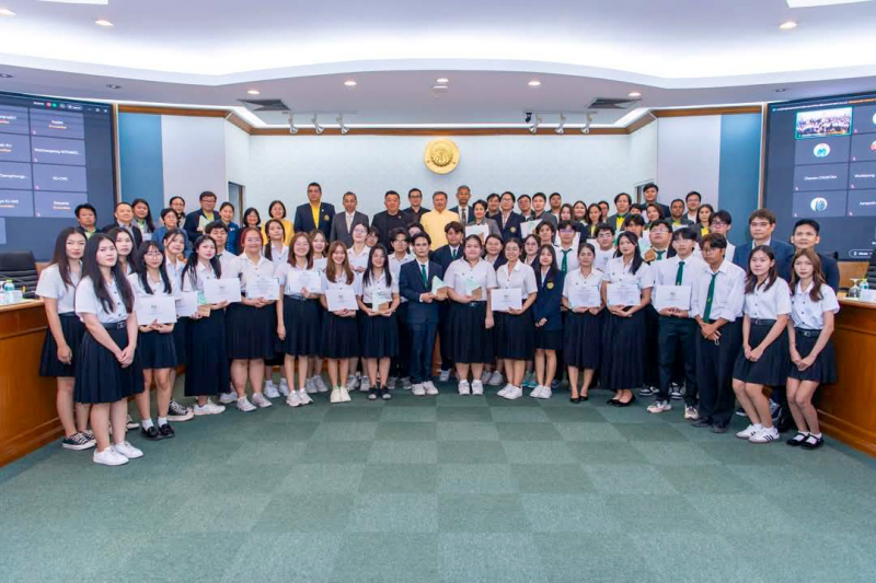 ผู้แทนสโมสรนิสิตคณะเกษตร กำแพงแสน เข้ารับมอบโล่ห์ พร้อมเงินรางวัล จากรักษาการแทนอธิการบดี