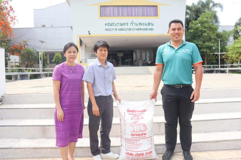วันอังคารที่ 18 กุมภาพันธ์ พ.ศ. 2568 นางสาวสุภัค ถาวรนิติกุล หัวหน้างานบริการการศึกษา และบุคลากร รับมอบวัสดุทางการเกษตร จากคุณเลิศสิริ ศรีจันทร์โฉม นักวิชาการส่งเสริมการเกษตรชำนาญการ ตัวแทนจากสำนักงานเกษตรจังหวัดนครปฐม เพื่อใช้ในแปลงนาต้นแบบเปียกสลับแห้งของคณะเกษตร กำแพงแสน จำนวน 4 ไร่ และอ้อยปลูกของฟาร์มนิสิต จำนวน 13 ไร่ รายการของที่นำมามอบได้แก่ 1) เครื่องพ่นยา จอมพลัง 767 จำนวน 1 เครื่อง 2) ปุ๋ย 0-0-60 จำนวน 2 กระสอบ 3) ปุ๋ย 21-0-0 จำนวน 8 กระสอบ ณ คณะเกษตร กำแพงแสน