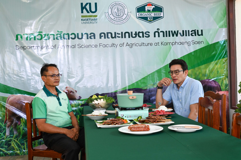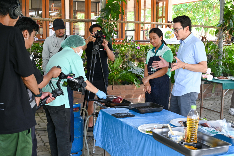 วันพฤหัสบดีที่ 6 มีนาคม 2568 รองศาสตราจารย์ ดร.ชเนษฎ์ ม้าลำพอง รองคณบดีฝ่ายวิจัย บริการวิชาการและวิเทศสัมพันธ์ พร้อมด้วยผู้บริหาร คณาจารย์ บุคลากร และนิสิต ให้การต้อนรับทีมงาน รายการ Walk In โดยมีพิธีกรที่ดำเนินการรายการ คือคุณชาคริต แย้มนาม ขอเข้าถ่ายทำรายการเกี่ยวกับการผลิตโคเนื้ออินทรีย์ ของภาควิชาสัตวบาล คณะเกษตร กำแพงแสน ตลอดห่วงโซ่การผลิตและการตลาด โดยมี ศาสตราจารย์ ดร.สุริยะ สะวานนท์ เจ้าของผลงานการผลิตโคเนื้ออินทรีย์ เป็นผู้ให้ข้อมูล