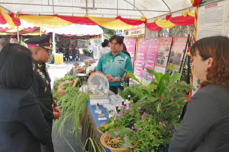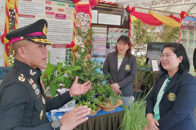 วันอังคารที่ 1 เมษายน 2568 ผู้ช่วยศาสตราจารย์ ดร.วนิดา สืบสายพรหม ผู้ช่วยคณบดีฝ่ายกิจการพิเศษ ได้รับมอบหมายจากคณบดีคณะเกษตร กำแพงแสน ในการร่วมแสดงความยินดีกับ พลตรีสมพงษ์ สุขประดิษฐ์ เจ้ากรมการสัตว์ทหารบก เนื่องในโอกาสวันสถาปนากองการสัตว์และเกษตรกรรมที่หนึ่ง จังหวัดกาญจนบุรี ครบรอบ 109 ปี พร้อมด้วยผู้ช่วยศาสตราจารย์ ดร.จำเนียร ชมภู หัวหน้าภาควิชาพืชไร่นา และบุคลากร ร่วมจัดนิทรรศการโครงการวิจัยเรื่อง การใช้สารสกัดจากพืชในการป้องกันและกำจัดปรสิตภายนอกของม้า ณ กองการสัตว์และเกษตรกรรมที่หนึ่ง จังหวัดกาญจนบุรี