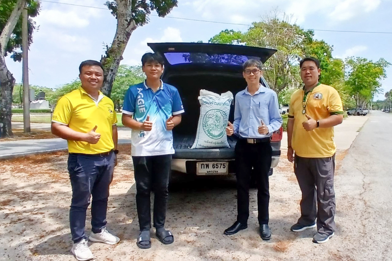 วันจันทร์ที่ 21 เมษายน 2568 ผู้ช่วยศาสตราจารย์ ดร. ธวัชชัย อินทร์บุญช่วย รองคณบดีฝ่ายพัฒนานิสิต รับมอบ เมล็ดพันธุ์ปอเทืองจำนวน 25 กิโลกรัม จาก สถานีพัฒนาที่ดินจังหวัดนครปฐม เพื่อให้สโมสรนิสิตคณะเกษตร กำแพงแสน ใช้ปลูกบำรุงดินระหว่างรอปลูกข้าวนาปี ในแปลงนา ฟาร์มนิสิตคณะเกษตร กำแพงแสน