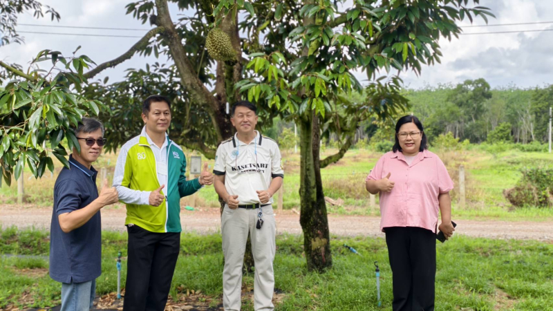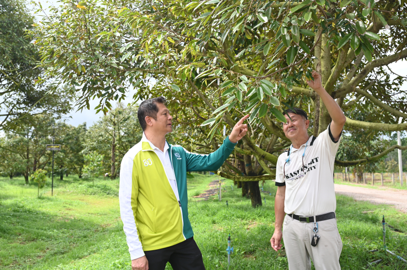 วันที่ 14 พฤษภาคม 2568 เวลา คณบดีคณะเกษตร กำแพงแสน ผู้ช่วยศาสตราจารย์ ดร.ชัยสิทธิ์ ทองจู ได้นำบุคลากรสำนักงานเลขานุการคณะเกษตร กำแพงแสน เข้าศึกษาดูงานกิจการของ “สวนประตูจันท์” โดยมีท่านนายกสมาคมนิสิตเก่าคณะเกษตร กำแพงแสน นายมนตรี ตั้งไมตรีจิตต์ เป็นผู้นำชมกิจกรรม ทั้งนี้คณะเกษตร กำแพงแสน ได้ตั้งเป้าหมายเป็นศูนย์รวมการจัดการความรู้ไม้ผลในสภาพอากาศเปลี่ยนแปลงโดยใช้ทุเรียนเป็นกรณีศึกษา ในการนี้ ได้เข้าพื้นที่แหล่งรวบรวมพันธุ์ทุเรียน ที่นำมาพัฒนาเป็น “ทุเรียนพันธุ์กำแพงแสน” ในปัจจุบัน ซึ่งได้ปลูกแล้วเมื่อวันที่ 1 มิถุนายน 2567 ณ แปลงปลูกทุเรียน มหาวิทยาลัยเกษตรศาสตร์ วิทยาเขตกำแพงแสน