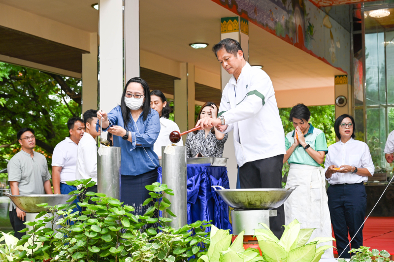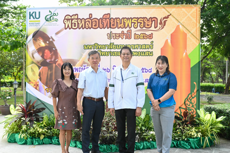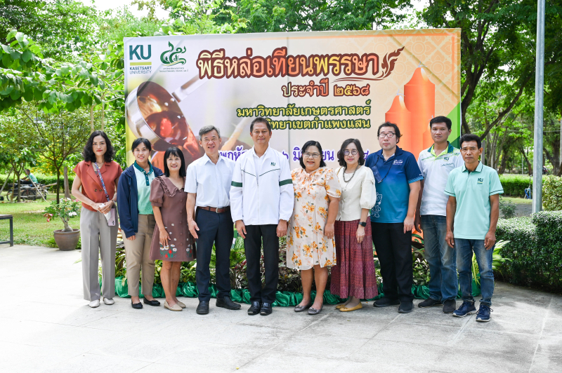 วันพฤหัสบดีที่ 26 มิถุนายน 2568 ผู้ช่วยศาสตราจารย์ ดร.ชัยสิทธิ์ ทองจู คณบดีคณะเกษตร กำแพงแสน พร้อมด้วยผู้บริหาร และบุคลากร ร่วมพิธีหล่อเทียนพรรษา ประจำปี 2568 โดยมี รองศาสตราจารย์ นายสัตวแพทย์ ดร.อนุชัย ภิญโญภูมิมินทร์ รองอธิการบดีวิทยาเขตกำแพงแสน เป็นประธานในพิธี ณ พุทธอุทยานเกษตร กำแพงแสน โดยจะมีพิธีถวายเทียนพรรษา ในวันพุธที่ 9 กรกฎาคม 2568 เวลา 13.30 น. ณ วัดสว่างชาติประชาบำรุง
