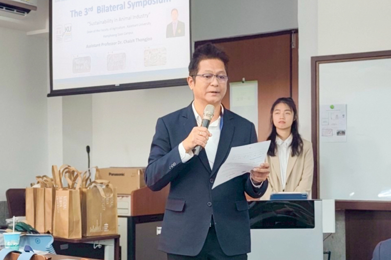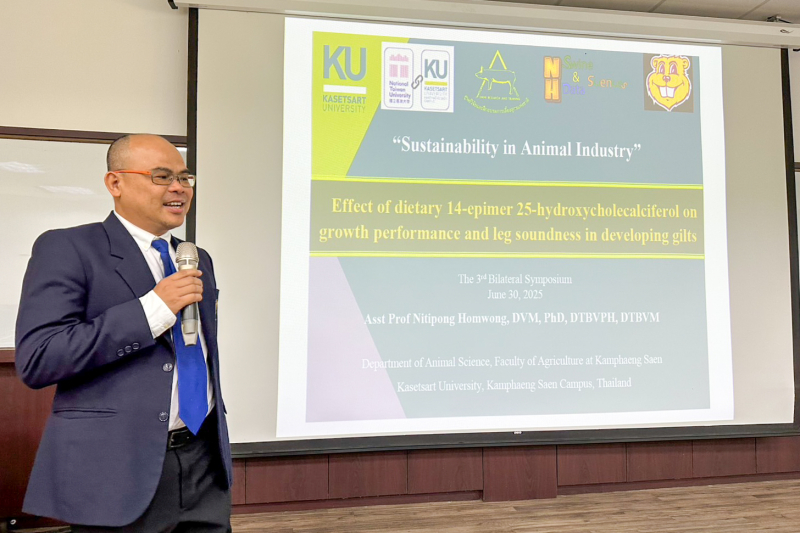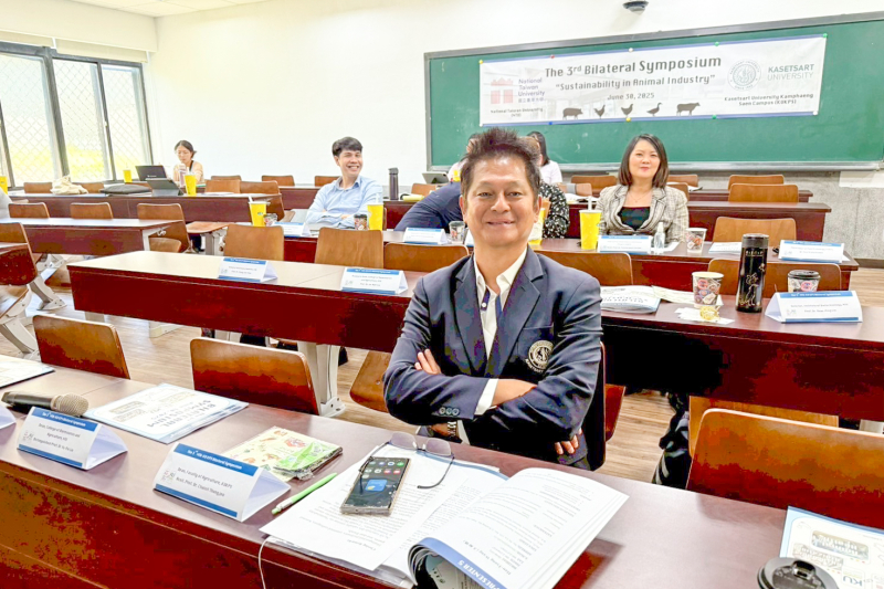 วันจันทร์ที่ 30 มิถุนายน 2568 ผู้ช่วยศาสตราจารย์ ดร. ชัยสิทธิ์ ทองจู คณบดีคณะเกษตร กำแพงแสน ร่วมกับ รองศาสตราจารย์ ดร. ชเนษฎ์ ม้าลำพอง รองคณบดีฝ่ายวิจัย บริการวิชาการ และวิเทศสัมพันธ์ นำคณะอาจารย์จากภาควิชาสัตวบาล ภาควิชาโรคพืช และโครงการจัดตั้งภาควิชานวัตกรรมอาหารปลอดภัย เข้าร่วมงาน 3rd Bilateral Symposium “Sustainnability in Animal Industry” ณ National Taiwan University พร้อมนี้ได้หารือกับผู้บริหารของ College of Bioresources and Agriculture ในการจัดการประชุมในครั้งที่ 4 ที่คณะเกษตร กำแพงแสน เป็นเจ้าภาพ ในปี 2027 และหารือความร่วมมือด้านการวิจัยระหว่างอาจารย์ นิสิตบัณฑิตศึกษา และการจัดทำ Double degree ระหว่าง 2 คณะ