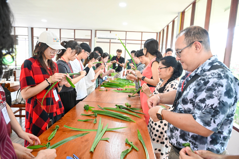 ในวันอังคารที่ 15 กรกฎาคม 2568 รองศาสตราจารย์ ดร.ชเนษฎ์ ม้าลำพอง รองคณบดีฝ่ายวิจัย บริการวิชาการและวิเทศสัมพันธ์ คณะเกษตร กำแพงแสน ให้การต้อนรับ อาจารย์และนักศึกษาจาก National Chung Hsing University ประเทศไต้หวัน จำนวน 17 คน จากนั้นเป็นการบรรยายและจัดแสดงนิทรรศการในหัวข้อ Utilisation of Bioherbicide for Controlling Water Hyacinth in Thailand โดย รองศาสตราจารย์ ดร.จินตนา อันอาตม์งาม ภาควิชาโรคพืช มีการเข้าเยี่ยมชมและศึกษาดูงานหน่วยงานภายใน ได้แก่ ศูนย์วิจัยและพัฒนาพืชผักเขตร้อน ภาควิชาพืชสวน, ศูนย์สาธิตการผลิตโคเนื้อครบวงจร คาวบอยแลนด์ ภาควิชาสัตวบาล, ภาควิชากีฏวิทยา, โครงการจัดตั้งภาควิชานวัตกรรมอาหารปลอดภัย, หอประวัติมหาวิทยาลัยเกษตรศาสตร์ วิทยาเขตกำแพงแสน และหน่วยงานภาคเอกชน ได้แก่ บริษัท เค-เฟรช จำกัด, ศูนย์เรียนรู้วิถีชีวิตและจิตวิญญาณชาวนาไทย (นาเฮียใช้), ศูนย์อนุรักษ์ป่าชายเลนคลองโคน