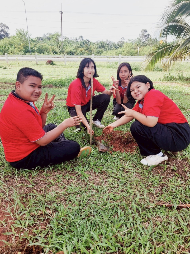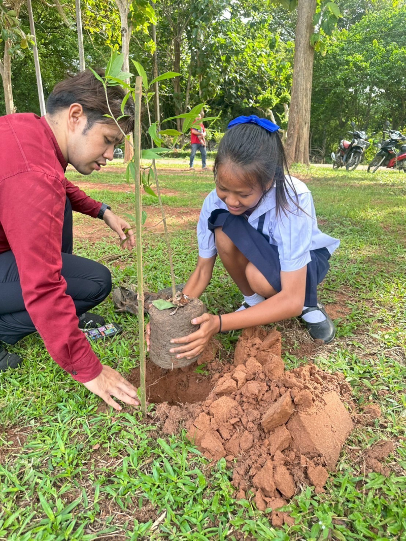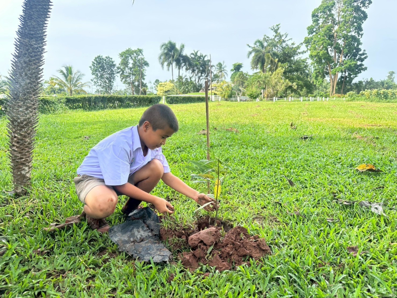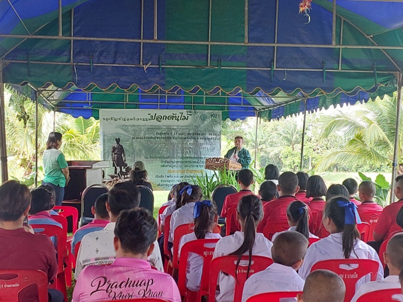 วันอังคารที่ 22 กรกฎาคม พ.ศ. 2568 ผู้ช่วยศาสตราจารย์ ดร.วิวัฒน์ หาญวงศ์จิรวัฒน์ ผู้ช่วยอธิการบดีฝ่ายพัฒนายุทธศาสตร์เชิงพื้นที่ ให้เกียรติเป็นปะธานในกิจกรรม “ปลูกต้นไม้" เพื่อรองรับนโยบายความเป็นกลางทางคาร์บอน (Carbon Neutrality)” ของ มหาวิทยาลัยเกษตรศาสตร์ โดย ผู้ช่วยศาสตราจารย์ ดร.วนิดา สืบสายพรหม ผู้ช่วยคณบดีฝ่ายกิจการพิเศษ ผู้แทนคณบดีคณะเกษตร กำแพงแสน กล่าวต้อนรับ ดร. ระวิวรรณ โชติพันธ์ รักษาการแทนหัวหน้าสถานีวิจัยสิทธิพรกฤดากร กล่าวรายงาน ผู้นำชุมชน ผู้บริหาร คณะครู และนักเรียนในพื้นที่ ร่วมในกิจกรรม