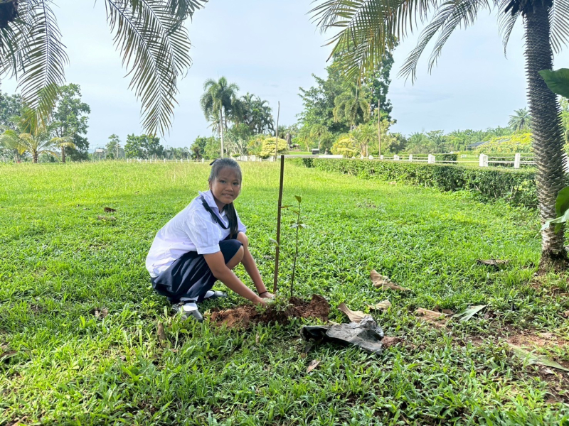 โดยได้ดำเนินการปลูกต้นไม้เศรษฐกิจบนพื้นที่จำนวน 15.5 ไร่ รวมทั้งสิ้น 700 ต้น ประกอบด้วยมะขามป้อม พันธุ์ LO 36 และ KB 28 จำนวน 100 ต้น ตะเคียนทอง, ยางนา, มะค่าโมง, กฤษณา, จันทร์หอม และต้นตาล รวม 600 ต้น ณ สถานีวิจัยสิทธิพรกฤดากร ศูนย์วิจัยและบริการวิชาการ คณะเกษตรกำแพงแสน