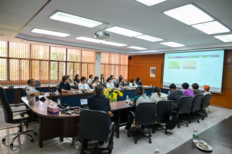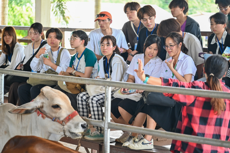 วันจันทร์ที่ 25 สิงหาคม 2568 คณะเกษตร กำแพงแสน โดย รองศาสตราจารย์ ดร.ชัยณรงค์ รัตนกรีฑากุล รองคณบดีฝ่ายบริหาร ให้การต้อนรับอาจารย์และนักศึกษาจาก Okayama University ประเทศญี่ปุ่น จำนวน 16 คน จากโครงการแลกเปลี่ยนนิสิตระหว่างมหาวิทยาลัยเกษตรศาสตร์ และ Okayama University โดยได้เข้าเยี่ยมชมและศึกษาดูงานคณะเกษตร กำแพงแสน ในส่วนของ ศูนย์วิจัยและพัฒนาพืชผักเขตร้อน ภาควิชาพืชสวน, ศูนย์สาธิตการผลิตโคเนื้อครบวงจร (คาวบอยแลนด์) ภาควิชาสัตวบาล และศูนย์วิจัยและพัฒนากีฏวิทยาสิ่งแวดล้อม (โดมแมลง)